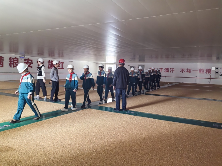 智慧糧倉(cāng)解鎖儲(chǔ)糧新認(rèn)知:走進(jìn)保障中心園區(qū),解說員為學(xué)生詳解園區(qū)整體概況。隨后的“糧倉(cāng)探秘”環(huán)節(jié),瞬間抓住孩子們的注意力。金黃的糧堆在眼前鋪開,先進(jìn)的儲(chǔ)糧技術(shù)映入眼簾,同學(xué)們紛紛發(fā)出驚嘆?!翱諝庵袧M是濃濃的麥香味!”孩子們興奮地圍在一起,分享初次接觸糧倉(cāng)的新鮮體驗(yàn)。當(dāng)看到糧倉(cāng)內(nèi)的電子測(cè)溫、害蟲誘捕器等安全儲(chǔ)糧設(shè)備時(shí),有孩子不禁感慨:“原來我們認(rèn)為普普通通的糧食里藏著這么多高科技!”陣陣驚嘆聲中,“大國(guó)糧倉(cāng)”的形象在孩子們心中變得具體而生動(dòng),他們對(duì)糧食儲(chǔ)存有了最直觀的認(rèn)識(shí)。